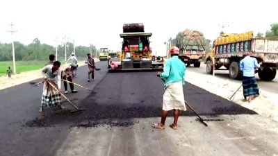 ময়লা-আবর্জনার ওপর পিচ ঢালাই জলঢাকা এলজিইডির কাজে প্রকাশ্য অনিয়ম